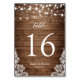 Rustic Country Wood Twinkle Lights Lace Wedding Table Number