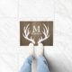 Rustic Country Wood White Deer Antlers Family Name Doormat
