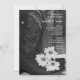 Invite guests to your upcoming ranch theme nuptials with the charming Rustic Cowboy Boots and Daisies Western Wedding Invitation. This casual yet classy custom country chic farm style marriage invite features a black and white floral photograph of leather western cowboy boots with white daisy flower blossoms and weathered barn wood. Available as a printed invitation for mailing or as a digital download for easy sharing digitally online.