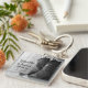 Customise the country chic Rustic Cowboy Boots Country Western Wedding Square Acrylic Keychain with the personal names of the bride and groom and marriage ceremony date. This charming custom ranch theme wedding key chain features a digitally enhanced black and white photograph of a pair of leather cowboy boots with a weathered brown barn wood background.