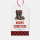 Rustic cowboy boots gift tag red green editable