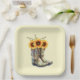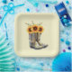 Rustic Cowboy Boots with Sunflowers Paper Plate