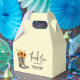 Tiny favour box with a cute illustration featuring cowboy boots filled with sunflowers. Original image painted with watercolors.