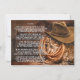 Cowboy memorial service announcement with rustic cowboy hat and rope on a hay bale and wood background. This cowboy memorial service announcement has room for the text of your choice on the front, and you can put a poem or other text on the back.