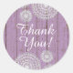 Rustic Crochet Doilies on Purple Wood Thank You Classic Round Sticker