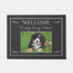 Modern rustic dark grey doormat with photo template and Welcome to my tiny home script.