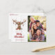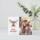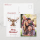 Cute Rustic Christmas Deer Ornaments Holiday Photo Postcard with an adorable deer whose antlers are festooned with rustic, charming Christmas ornaments. The winter holiday botanical florals around his neck and the wood background make this the perfect backdrop for your family photo and custom greeting!