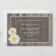 Rustic bridal shower invitation with white daisies on a weathered barn wood background.