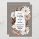 Invite your friends and loved ones to your wedding with this autumn floral wedding invitation featuring a grey border with earthy-toned petunias and white daisies. This invitation is perfect for a garden wedding.