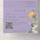 Rustic Daisy & Lavender Floral Purple QR Code All In One Invitation