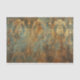 This is an ornate, decorative pattern in shades of gold, turquoise, and rust. The design features intricate, symmetrical damask or arabesque motifs that resemble stylised acanthus leaves, scrolls, and floral elements arranged in vertical columns. The patterns have a distressed, weathered appearance with faded and worn areas, revealing turquoise and rust underneath the gold top layer. This aged patina effect gives the design an antique or vintage feel.