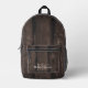 Rustic dark brown old wood Carpenter Monogram name Printed Backpack. Cool fashion accessory bag for him. Create a unique and personalised backpack with a custom touch! Modern monogram with your initial and your name for that extra personal flair. Gifts for men, carpenter, wood worker, handy man...