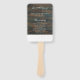 Rustic Dark Wood Wedding Program Hand Fan. The design has a dark wood background texture and a modern white script. Personalise all the text on the fan. Click the collection link bellow the fan to find more matching items.