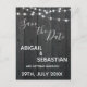 On trend, Rustic Dark Wood with String Lights, Save the Date, postcard. Announce to friends and family, the good news of your forthcoming Wedding! Add in your details, on the front and on the reverse of the postcard. Add in your names, and date!