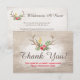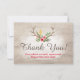 Rustic Deer Antler Bohemian Floral Wood Thank You Card