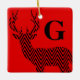 Rustic Deer Chevron Monogram | red black Ceramic Ornament