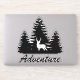 Adventure awaits! Whether you are an avid hiker, camper, or just all around adventurer, this sticker speaks to who you are! Put it on your suitcase, laptop, or anywhere you'd like to be reminded of the great outdoors. This sticker has a black forest trees silhouette with a white deer and the word "Adventure" in thick script.