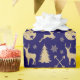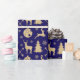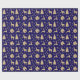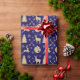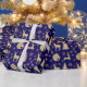 Rustic Deer Gold Christmas Pattern on Blue Wrapping Paper