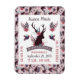 Rustic Deer Head Baby Girl Birth Record Stats Personalised Design with Name and custom text. A fun forest animal Deer Antlers and Floral design. In Mauve pink, plum purple, and coral. For welcoming New Baby Girl! Perfect for a new baby Gift - Personalised birth stats keepsake magnets! Customise it by adding your info! First, last, middle name, date, time, weight, height, location!