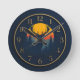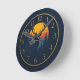 Bring the beauty of the outdoors inside with this rustic and elegant wall clock. The design features a striking silhouette of a deer against a vibrant sunset, with a scenic backdrop of mountains and pine trees. The deep navy blue face and classic gold numbers give it a refined look that's perfect for a cabin, a lodge-style home, or any room that celebrates nature. It's an ideal gift for hunters, wildlife enthusiasts, or anyone who appreciates rustic charm.
