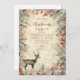 A woodland Christmas party design featuring a rustic deer among pine branches and red berries. The vintage style and earthy winter tones create a cosy, festive atmosphere, perfect for a woodland or cabin-themed holiday gathering.