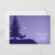Rustic Deer Pine Tree Country Purple Wedding RSVP Cards with a deer with antlers looking over a ridge with a pine tree and the moon in the background. These are great for anyone who loves wildlife or hunting or a simple nature inspired scene.