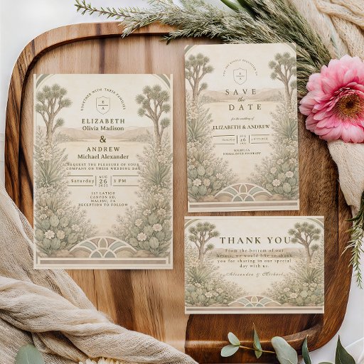 A warm, romantic wedding design inspired by desert landscapes and soft botanical florals. Illustrated wildflowers frame rolling hills in earthy, sun-washed tones, creating a refined boho aesthetic that feels natural, elegant, and timeless. Perfect for couples planning an outdoor, desert, or nature-inspired celebration with customizable details.