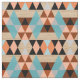 Beautiful contemporary teal blue turquoise, pastel peach orange, dark red brown, black and faux wood coloured diamond shaped squares triangles fantasy mosaic pattern. You can make 3 double layer face masks with optional filter pocket out of a Fat Quarter size piece of fabric (28" x 18").