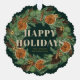 Send a greeting that doubles as a keepsake with this paper ornament card from the Rustic Dried Orange and Pine Holiday Collection by Porch and Gable Design. The front features a watercolor pine wreath with dried oranges, winter greenery, cinnamon sticks, eucalyptus, pine cones, and festive brass bells on a rich dark green background. The text reads “Happy Holidays” with customisable space below for a family name, business name, favourite holiday phrase, or the year making it easy to add a personal touch. On the back, there’s room for your handwritten or printed message, turning this into a heartfelt holiday card and a charming ornament your loved ones can hang on their Christmas tree.
