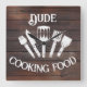 Bring personality and humour to your kitchen or grilling area with this rustic ‘Dude Cooking Food’ wall clock!