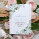 A pretty wildflower theme bridal shower invitation, featuring dusty blue, white and pink wildflowers, with script typography. Contact designer for matching products. Copyright Anastasia Surridge for Elegant Invites, all rights reserved.