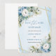 This dusty blue and gold floral Save the Date sets the tone for your celebration with its refined yet romantic style. The gentle hues of blue and white evoke calm elegance, while the gold accents add a touch of glamour — a perfect combination for brides seeking sophistication and charm.