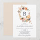 This rustic earth florals monogram wedding invitation is perfect for a fall wedding. The elegant earth tone design features rustic watercolor flowers in terracotta, copper, burnt orange, peach, blush pink and cream white tones with vintage boho style. Personalise the card with your last initial monogram.