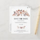 Rustic Earth-tone Boho Save the Date -Save the Date features gorgeous, watercolor flowers in a earth-tone colour palette complimented with blush and feathers. Perfect for the bride and groom who love a boho theme. Save the Date is part of a collection. Back shown in blush pink, but you can easily change the background colour to compliment your wedding theme.