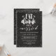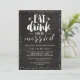 Couple's shower invitation with the classic Eat, drink, and be married quote written in hand-lettered fonts on a chalkboard background.