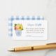Flowers in Autumn tones (reds, oranges, yellows) in a preppy ginger jar vase for this baby shower enclosure card design. The reverse features a gingham check in white and mid blue (you can change the blue to any other colour by entering the design tool and changing the background colour).