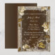Rustic brown background with white roses and gold wedding rings. Surprise your friends and family with a charming engagement party invitation that blends classic style with fresh, modern details when you send this elegant invitation. This beautiful invitation card is all ready to be personalised. Personalise the card by changing the text in the fields provided front and back. You can change font style, size, and colour, as well as paper type and style.