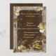 Rustic brown background with white roses and gold wedding rings. This beautiful wedding RSVP/response card is all ready to be personalised for your special wedding day. Personalise the card by changing the text in the fields provided front and back. You can change font style, size, and colour, as well as paper type and style.