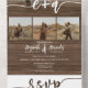 Elegant rustic brown country barn wood elegant classic in one calligraphy wedding invitation with rsvp and initials monogram. With a modern and trendy script, add 4 of your photos.
