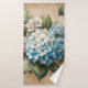 Elevate your bathrooms' decor with this elegant, rustic bath towel set. This botanical ensemble features a watercolor illustration of blue and white hydrangeas with green leaves on a faux burlap background. The soft color palette and charming design will add a touch of rustic elegance, transforming your bathroom into a peaceful and inviting space. Available as a three-piece set or as individual pieces, the choice is yours.