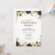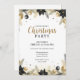 Welcome guests with warmth and style using this beautifully crafted invitation featuring a lush evergreen wreath with golden eucalyptus, black poinsettias, and festive gold ornaments. The natural botanical elements against a soft cream background create a timeless elegance perfect for rustic-chic celebrations, farmhouse-style gatherings, or sophisticated country Christmas parties.
