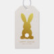 Simple Easter personalised gift tag or favour tag featuring a gold bunny with fluffy tail, minimalist modern typography, and stylish sage green simulated kraft paper background. Classy, modern and chic. Customise with short greeting and name. Perfect for Easter gift Easter party favour.