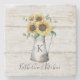 Rustic Elegant Monogram Sunflower Eucalyptus Stone Coaster