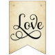 Custom Mr. and Mrs. wedding bunting banner features a letter that can be customised with the bride and groom's married last name initial. Banner features Love in script writing along with hearts accents. Black print on rustic antique parchment textured style background.