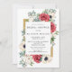 Rustic Elegant Red and Gold Floral White Bridal Shower Invitations. Design Features Red Flowers, Anemone and White Flowers with Greenery Elegant Rustic Gold Frame With Adorned Back