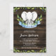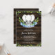 Cute boy elephant baby shower invitation design featuring a rustic wood background with watercolor illustrations. Trendy green leaf branches with blue berries and a blue watercolor It's a Boy banner, make this a stylish boy baby shower invite.