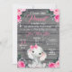 Very cute Girl Elephant/Peanut with a Pink Bow Drive By Baby Shower (celebrate in Pandemic Covid19 quarantine) with watercolor rustic pink flowers and wooden background. All fields are editable. Suitable for birthday or Baby Showers, Diaper shower,sip and see.