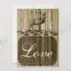 A rustic country wedding invitation with an elk and elk antlers border and barn wood planks. The backside of the invitations features the same rustic country scene and the word "Love". Completely customisable with your own details.