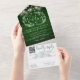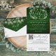 Rustic Emerald Green String Lights QR Code Wedding All In One Invitation