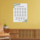 This wedding seating chart is rustic and homey yet stylish and elegant. It features a hand painted watercolor boho chic design with sprigs of eucalyptus leaves, greenery and foliage in shades of mint, moss, and sage green. It includes table assignments for 19 tables at 10 seats per table for a total of 190 guests. The lacy script calligraphy title reads: Please find your table, and the names of the couple and wedding date appear at the bottom. Wonderful way to help your guests find their seats while adding elegance and style to your reception.